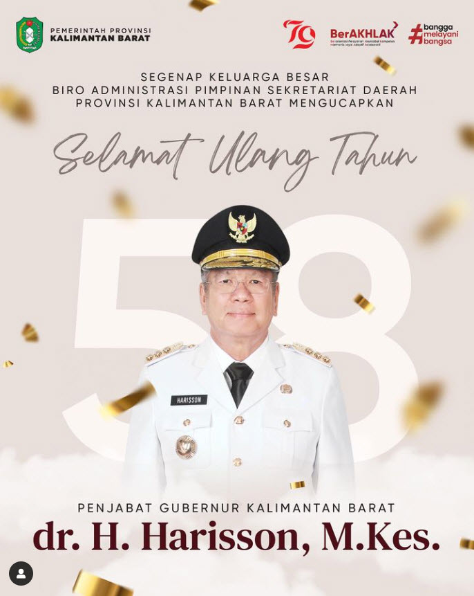 Selamat Ulang Tahun Penjabat Gubernur Kalimantan Barat, Bapak dr. H. Harisson, M.Kes 🎉